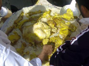 محمد الحيجي الأربعاء 11 حزيران 2008لاتزال "ديرالزور" تحتفظ بالكثير من العادات والتقاليد الأصيلة من كرم وشهامة، إضافة إلى مأكولاتها الرئيسية التي لم ولن تستغني عنها، حيث شهدت قرية العشارة شرقي دير الزور (60) كم عن دير الزور بتاريخ (20/5/2008) وتحديدا في منزل الحاج عجاج النجرس وليمة احتضنت أكثر من مائة رجل. كاميرا edair-alzor شاركت في الوليمة وعادت بهذه اللقطات. http://www.albwhsn.net/vb/attachment...1&d=1335340867 http://www.albwhsn.net/vb/attachment...1&d=1335340867 أثناء تناول الطعام http://www.albwhsn.net/vb/attachment...1&d=1335340867 الخبز الديري حاضراً http://www.albwhsn.net/vb/attachment...1&d=1335340867 الاكل بالأيدي http://www.albwhsn.net/vb/attachment...1&d=1335340867 قدور الطعام http://www.albwhsn.net/vb/attachment...1&d=1335340867 من عمليات السكب |