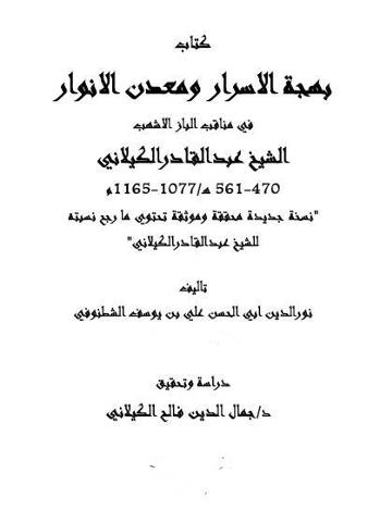 يشرفني أن أقدم لكل المحبين والمهتمين والمتابعين ...تحقيقي لكتاب (بهجة الأسرار ومعدن الأنوار في مناقب الباز الأشهب الشيخ عبد القادر الكيلاني {قدس الله روحه} للشطنوفي) {نسخة مهذبة تحتوي مارجح نسبته لصاحب الترجمة ، مخطوطة نادرة صورها العلامة المرحوم: الدكتور مصطفى جواد من جامعة السوربون بباريس} , و الكتاب منشور ورقي و pdf ورابط التحميل هو