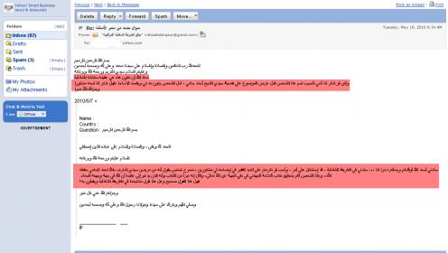 وهذه صور المراسلات مع موقع الطريقة الشاذلية واخيراً رد سيدي العارف بالله احمد الجامي حفظه الله