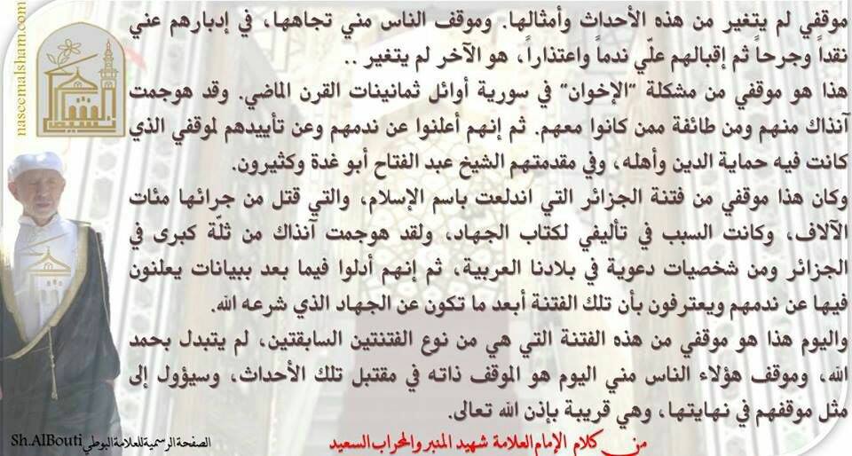 رسالة وفاء من فضيلة العالم الجليل محمد سعيد رمضان البوطي أبو أنور القسم العام 17 03-25-2013 03:31 PM
