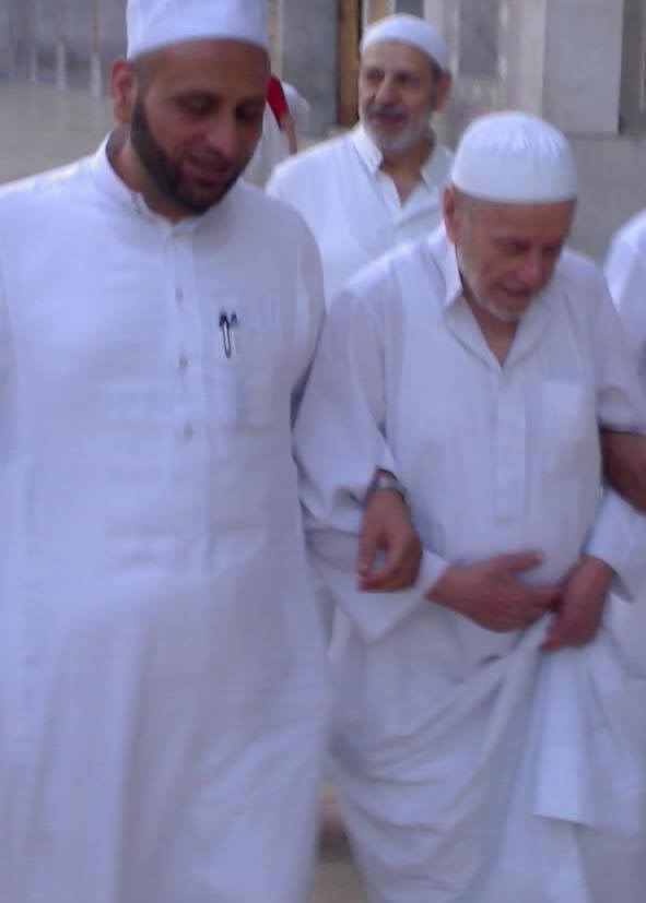 العارف بالله الشيخ حمدي عرابي رحمه الله في صحن الجامع الأموي والشيخ فواز النمر حفظه الله