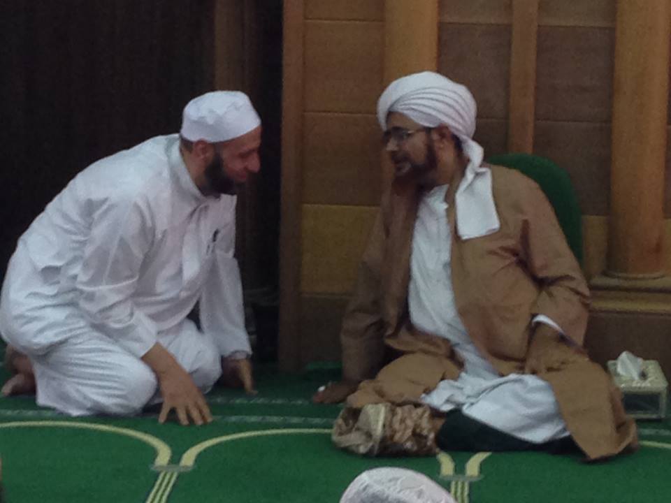 الشيخ محمد فواز النمر القائم بالتدريس والإمامة في الجامع الأموي بدمشق اثناء زيارة سيدي الحبيب عمر بن حفيظ حفظه الله