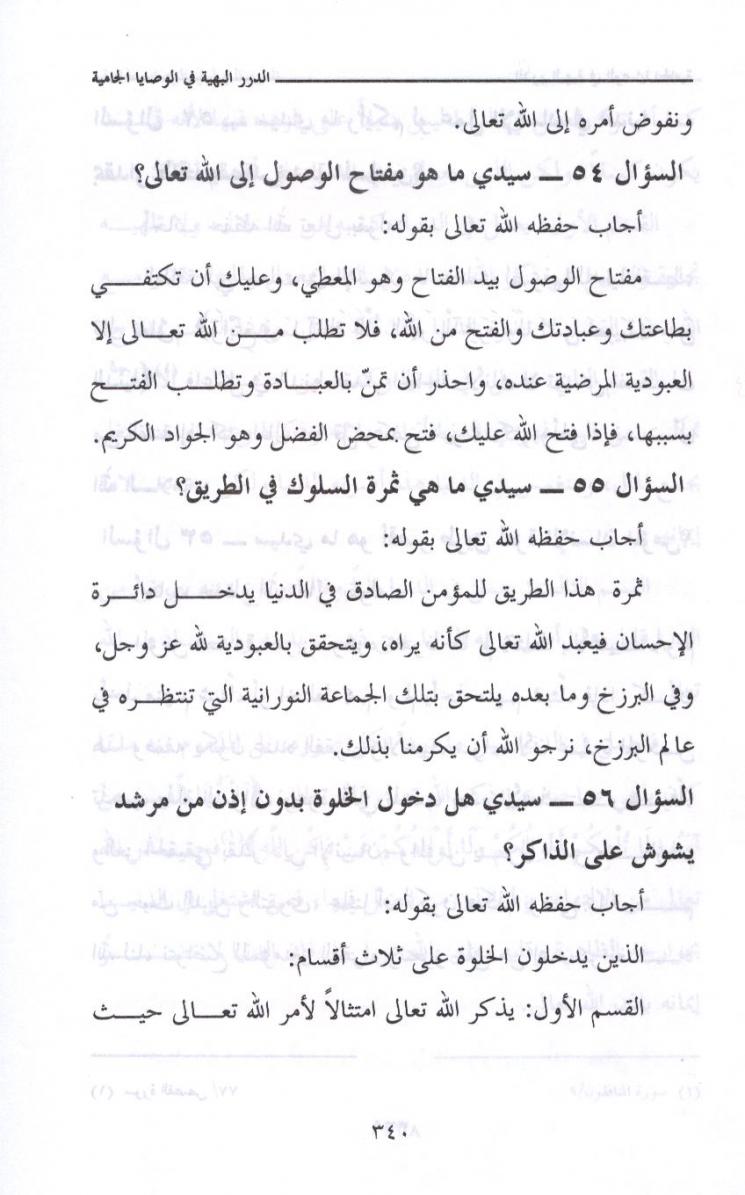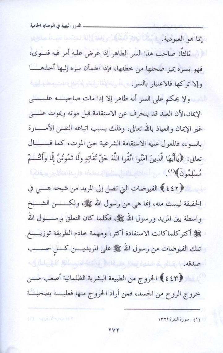 {45} المريد الصادق يأخذ بوصية الله عزوجل ، وليس هناك أفضل وأكمل من وصية الله حيث يقول : { يَا أَيُّهَا الَّذِينَ آمَنُوا اذْكُرُوا اللَّهَ ذِكْرًا كَثِيرًا } سورة الاحزاب /41