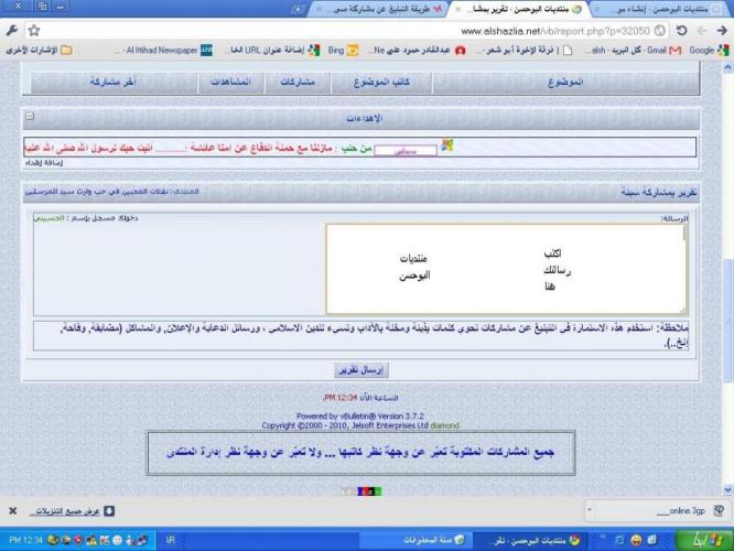 اليكم توضيح طريقة إرسال تقرير عن موضوع أو مشاركه مخالفه أو سيئة
