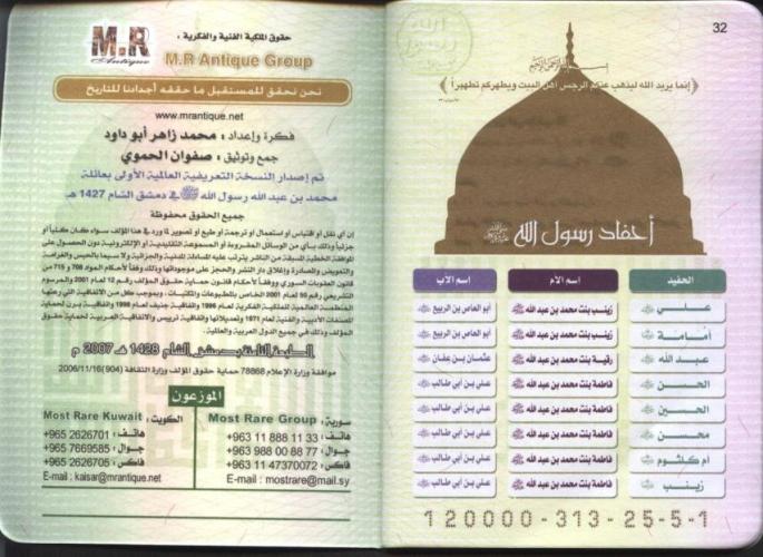 من باب النصيحة في الدين أنقل نص فتوى الشيخ أحمد نعسان حول البطاقة العائلية لسيدنا رسول الله صلى الله عليه وسلم