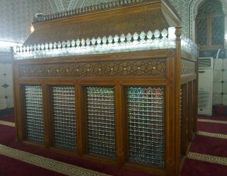 5-مصحف كتب بماء الذهب السطر الكبير، وبقية الاسطر بالحبر الاسود، وفي اطرافه دوائر مزخرفة بالذهب والالوان..أهداه مصطفى أغا سنة 1073هـ وكان موضوعا على صف مزخرف بالصدف.