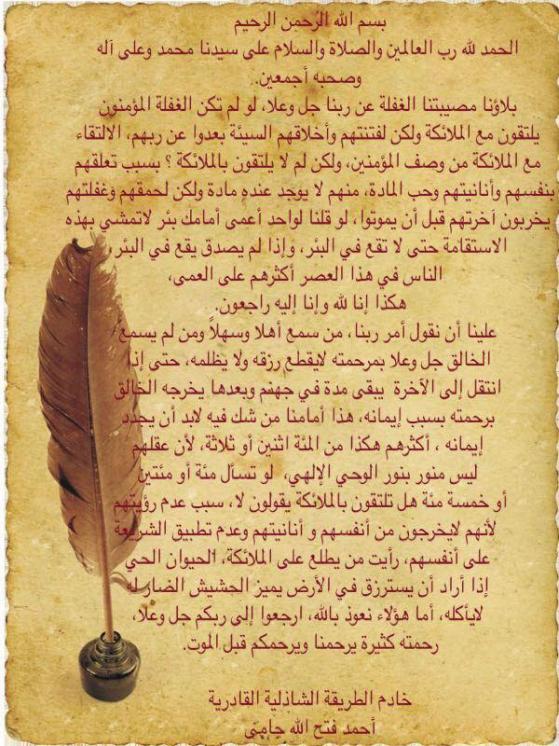 | من وصايا سيدنا الشيخ احمد فتح الله جامي حفظه الله بتاريخ 23/4/2013 | عبدالقادر حمود | رسائل ووصايا في التزكية | 4 | 05-06-2013 04:55 PM |