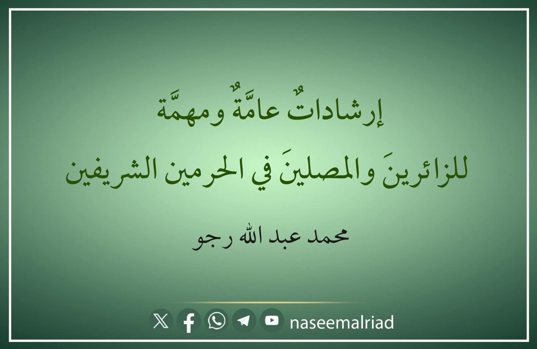 افتراضي إرشاداتٌ عامَّةٌ ومهمَّة للزائرينَ والمصلينَ في الحرمين الشريفين
