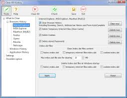 برنامج Clear All History أكيد عندما تتصفح الأنترنت سوف تترك أثرك أثناء زيارة المواقع تقوم المتصفحات عند زيارتك للمواقع بحفظها في حاسوبك ويقوم بحفظ كل الملفات المواقع التي تزورها على قرصك الصلب مع مرور الوقت سوف تتكدس هذه الملفات والحجم يكبر وسوف تلاحظ أن حجم قرص صلب بدأ يقل دون معرفتك لسبب لهذا صمم هذا البرنامج المميز حيث بأمكانك بكل سهولة حذف ذاكرة المتصفحات والمواقع التي تزورها ويقوم البرنامج بحذف الكويكز ويحافظ البرنامج على سريتك أثناء تصفحك لشبكة العنكبوتية يدعم البرنامج المتصفحات : Internet Explorer, Netscape, Mozilla Firefox and Opera يتخلص البرنامج من الملفات index.dat والتي تحجز لها مساحة كبيرة من قرص الصلب مع هذا البرنامج سوف يقوم بحذف جميع المواقع التي قمت بزيارتها نهائيا وتخلص من كويكز ويحذف كل مايتعلق بذاكرة التخزين :extra84: