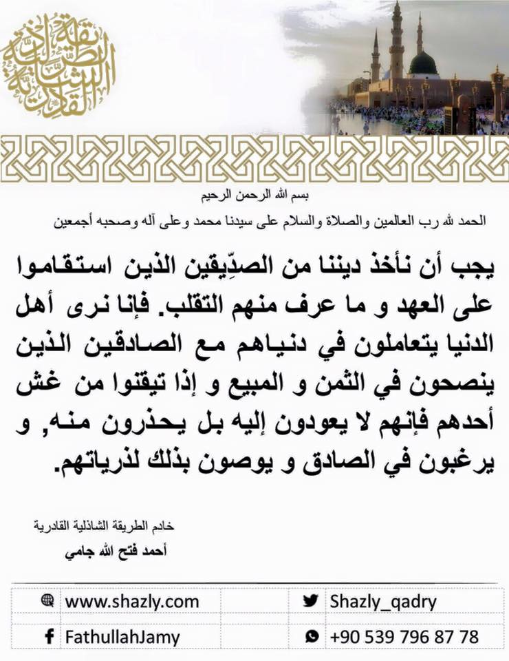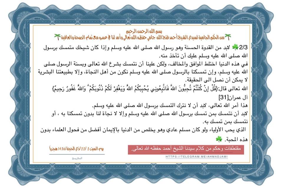 رد: مقتطفات لسيدي الشيخ احمد فتح الله جامي حفظه الله