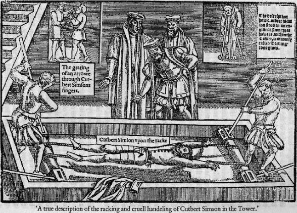 صورة للوحة قديمة تبين عملية تعذيب أعضاء ديوان التفتيش لضحاياهم حتى الموت