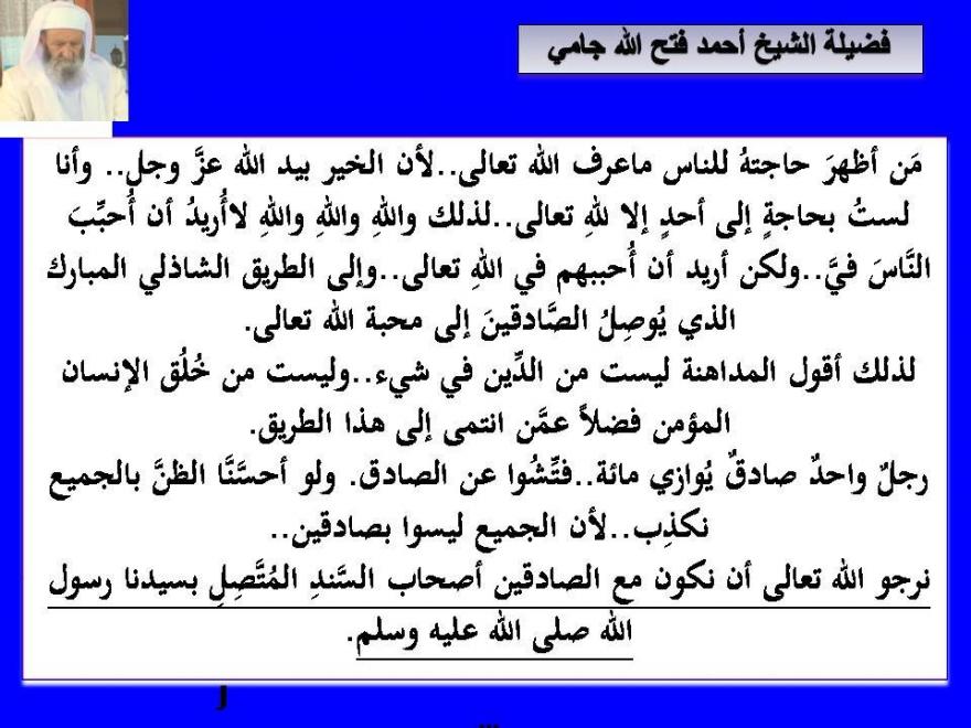 | من وصايا سيدي الشيخ احمد فتح الله جامي حفظه الله | عبدالقادر حمود | رسائل ووصايا في التزكية | 6 | 01-29-2014 05:25 AM |
