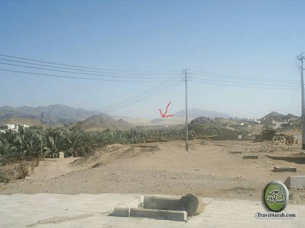 السهم الأيسر يؤشر على جبل الملائكة ( و لتسميته بجبل الملائكة قصة و سنذكرها لاحقا )