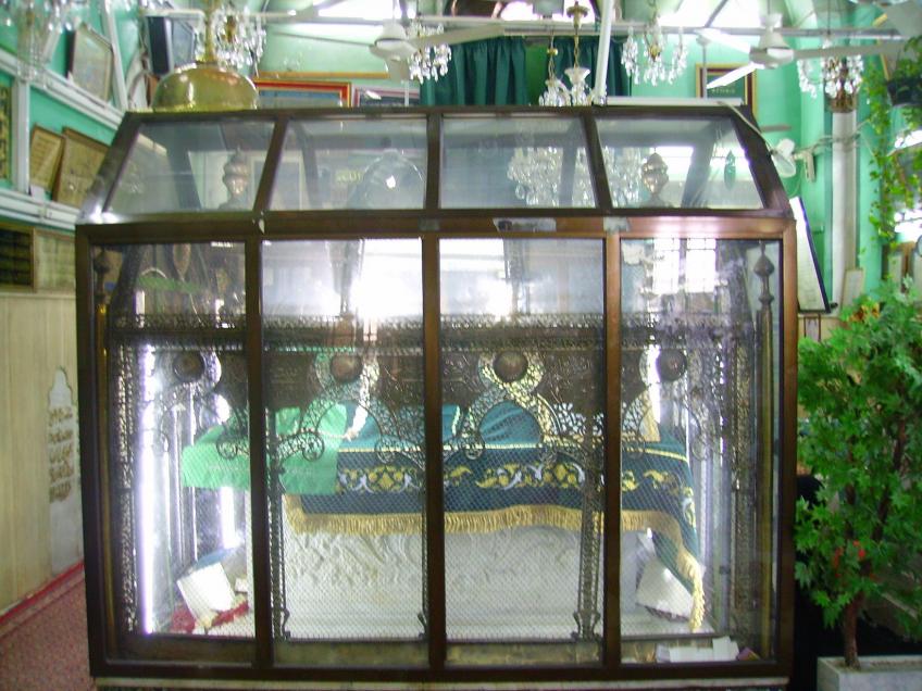 هذه صورة المقام(حسب المتعارف عليه) ولكن المكان الحقيقي للمقام هي اسفل المسجد ويدخلون اليه بعد الاستئذان من اصحاب البيت لان مدخل المقام يمر عبر بيتهم |