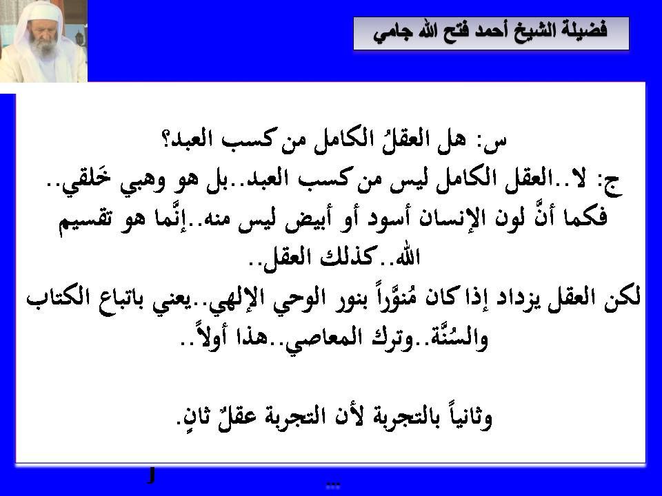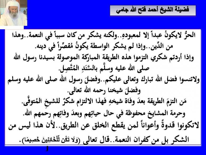 رد: مقتطفات لسيدي الشيخ احمد فتح الله جامي حفظه الله