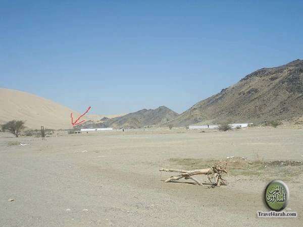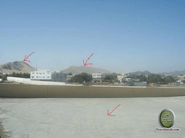 السهم الأيسر يؤشر على جبل الملائكة ( و لتسميته بجبل الملائكة قصة و سنذكرها لاحقا )