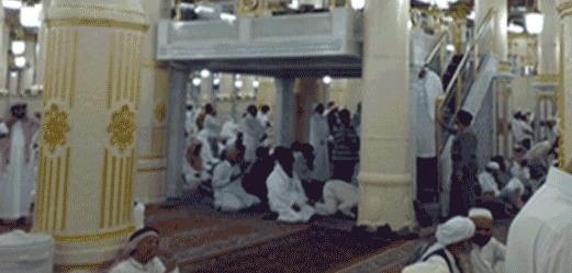 حيث بركت ناقة النبي صلى الله عليه وآله وسلم فبنى مسجده وهو الموقع الذي بُنيت عليه المكبرية التي تُبَلغ منها تنقلات الصلاة من قبل اختراع مكبرات الصوت وصارت الآن مكان الأذان