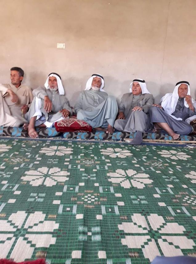 من اليمين حج حامد العلي من وجهاء البوحسن وفي الوسط اسود الصايل من وجهاء البورحمة وعلي اليسار ابو ناصر علي حامد العلي من وجهاء البوحسن