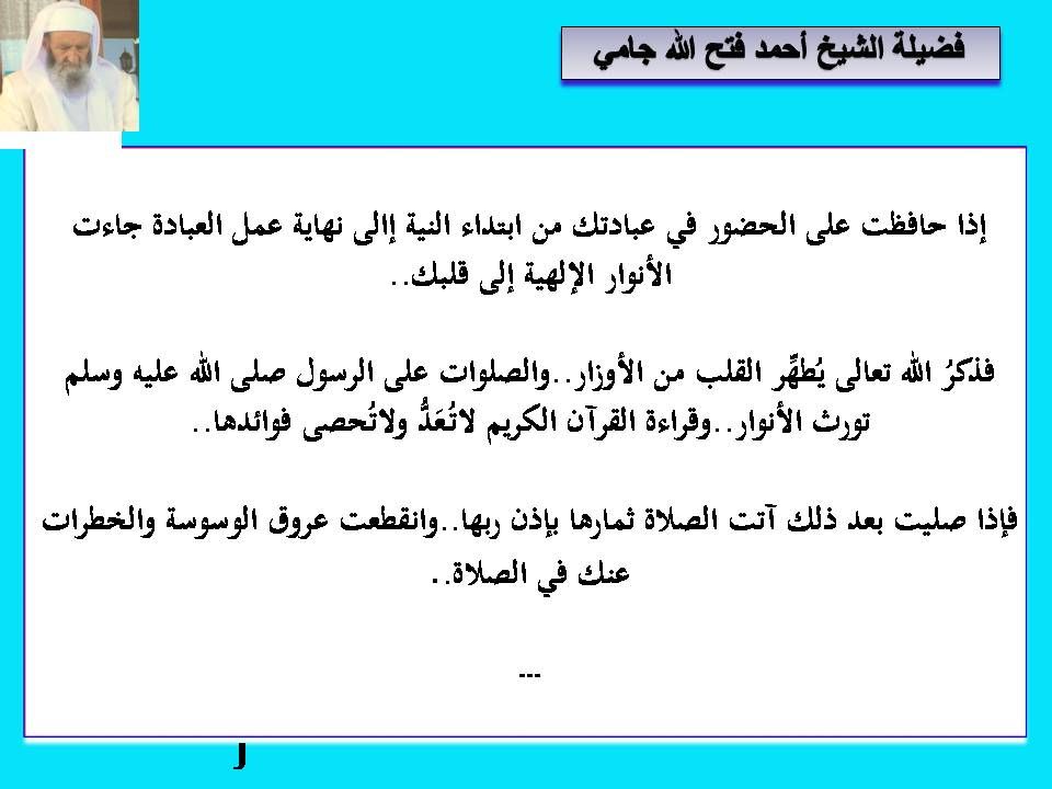 من وصايا سيدي الشيخ احمد فتح الله جامي حفظه الله عبدالقادر حمود رسائل ووصايا في التزكية 6 01-29-2014 05:25 AM