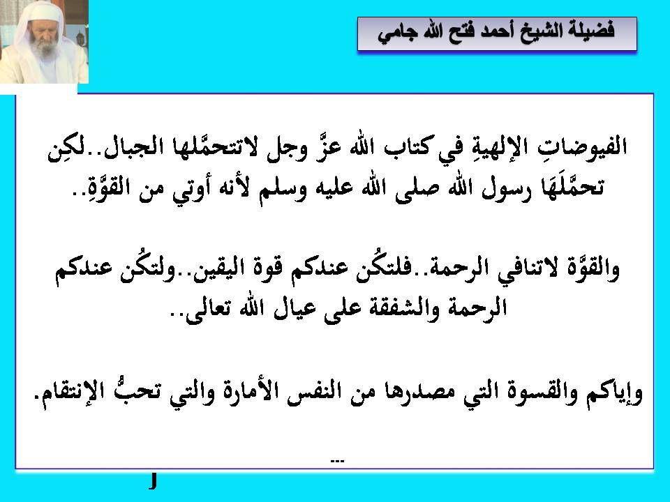 وصايا نورانية من مرشدنا سيدي الشيخ احمد فتح الله جامي حفظه الله عبدالقادر حمود رسائل ووصايا في التزكية 9 04-21-2013 05:26 PM