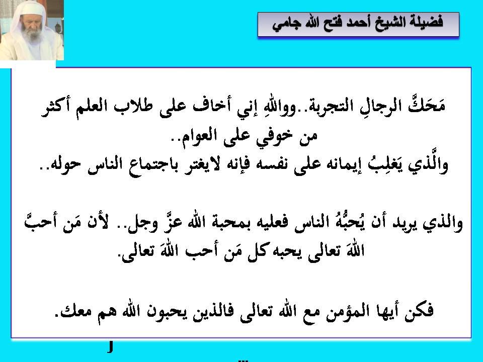 من وصايا سيدنا الشيخ احمد فتح الله جامي حفظه الله بتاريخ 23/4/2013 عبدالقادر حمود رسائل ووصايا في التزكية 4 05-06-2013 04:55 PM
