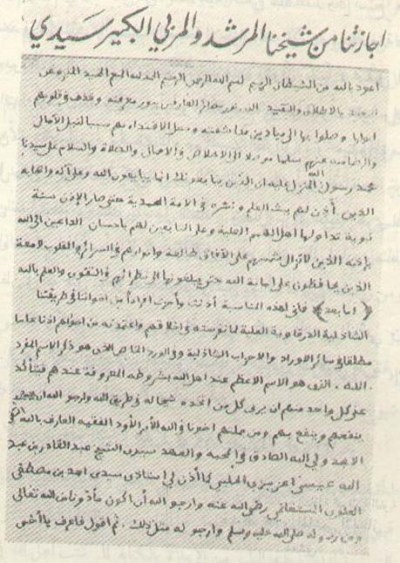 وهذه صورة احازته من سيدنا محمد الهاشمي التلمساني